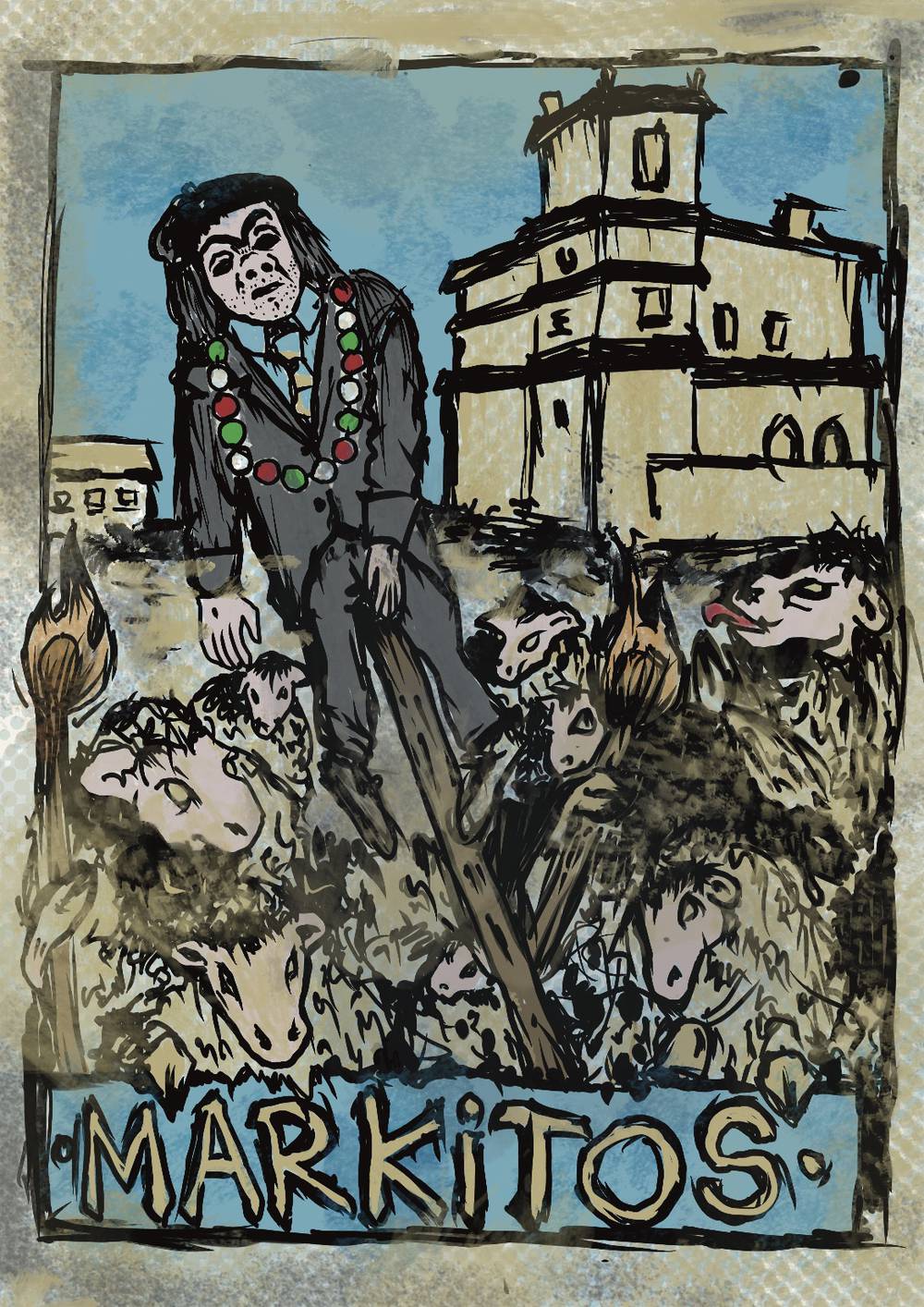 Markitos harrapatu egin dute herritarrek eta asto gainean daramate plazara, epaiketara. Atzetik datoz andre-gizona, artzaina eta artaldea, domadorea eta hartza, idiak, porreroak. Predikadoreak eman du epaia: erre sutan Markitos!